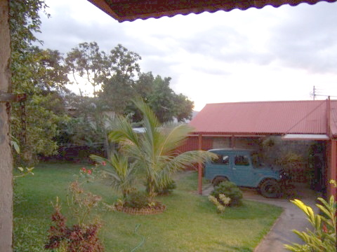 ![]() Nicole in the computer/tv room. ![]() This is a little dinning area, the window behind the table is Hats's window to in her room. This is where we eat breakfast and lunch. We eat dinner in another room. ![]() Another picture of the table. ![]() El Jardin, the back yard. The trees are fruit trees. Oranges, banannas, and grapefruit. It is very beautiful. They said it is the nicest of all the yards! ![]() Picture taken